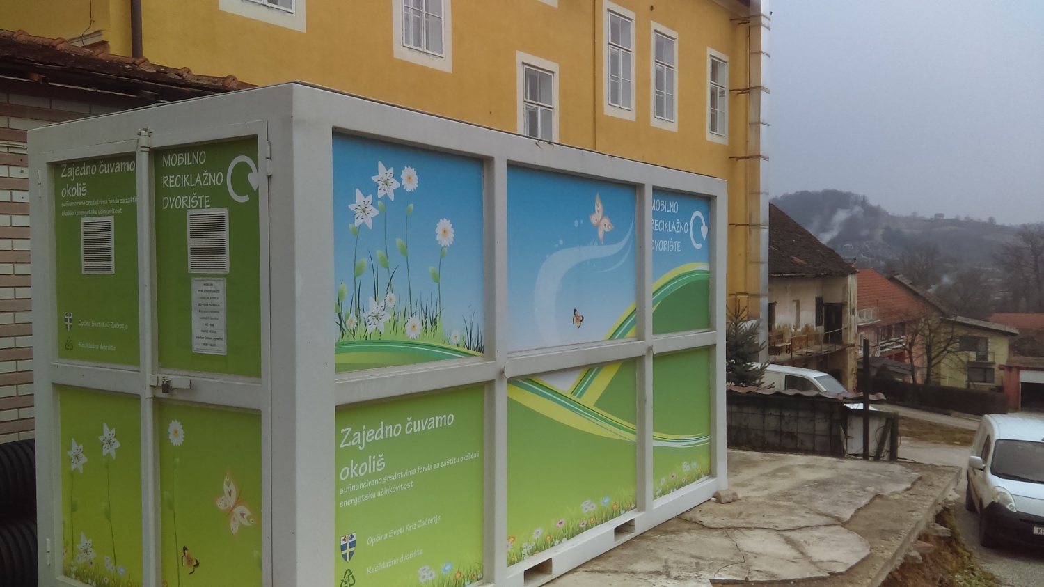 Općina Sveti Križ Začretje je opisanu mobilnu jedinicu nabavila uz sufinanciranje Fonda za zaštitu okoliša i energetsku učinkovitost, a za početak će biti smještena na Trgu hrvatske kraljice Jelene, u dvorištu iza zgrade Općine. U prvih šest mjeseci ove godine mobilno reciklažno dvorište biti će otvoreno jednom mjesečno – svake prve srijede u mjesecu. Kasnije se isto planira premještati po mjesnim odborima kako bi građani, doslovce na kućnom pragu mogli odlagati posebne vrste otpada.
